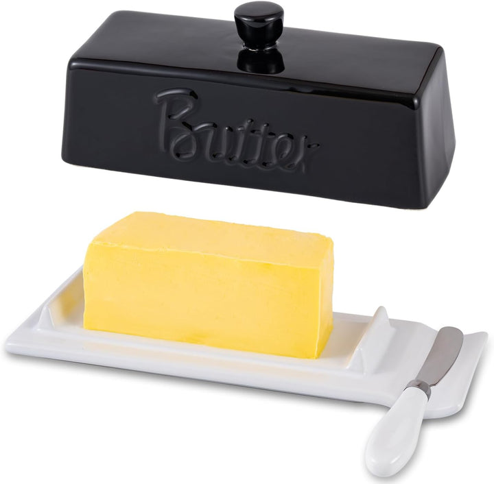 Amieenor Ceramic Butter Dish with Lid & Knife – 8"Butter Keeper