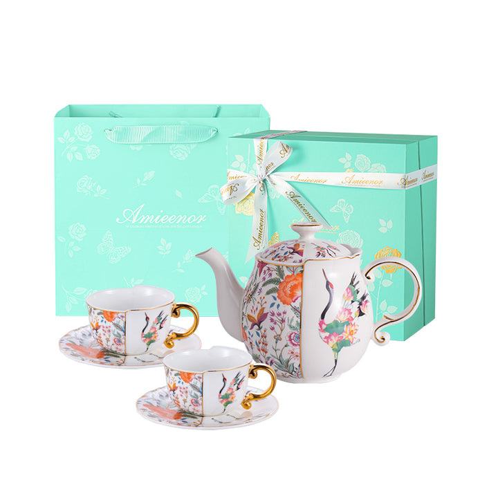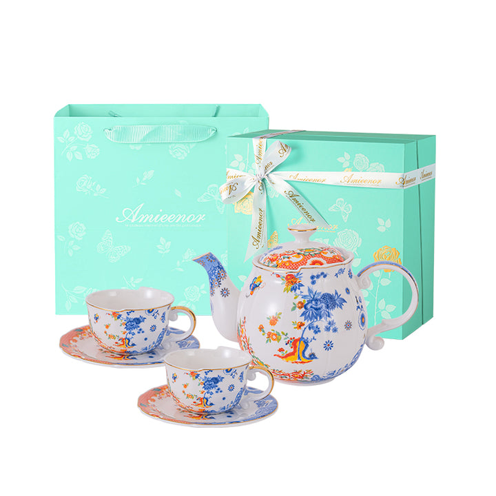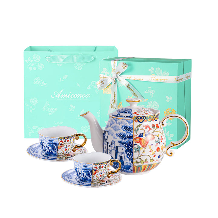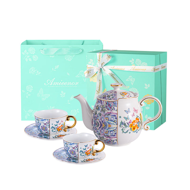Amieenor Limited Bone China Tea Set │ 850 ml Teapot & 2 Cups/Saucers with 24K Gold Rim, Luxury Gift Box