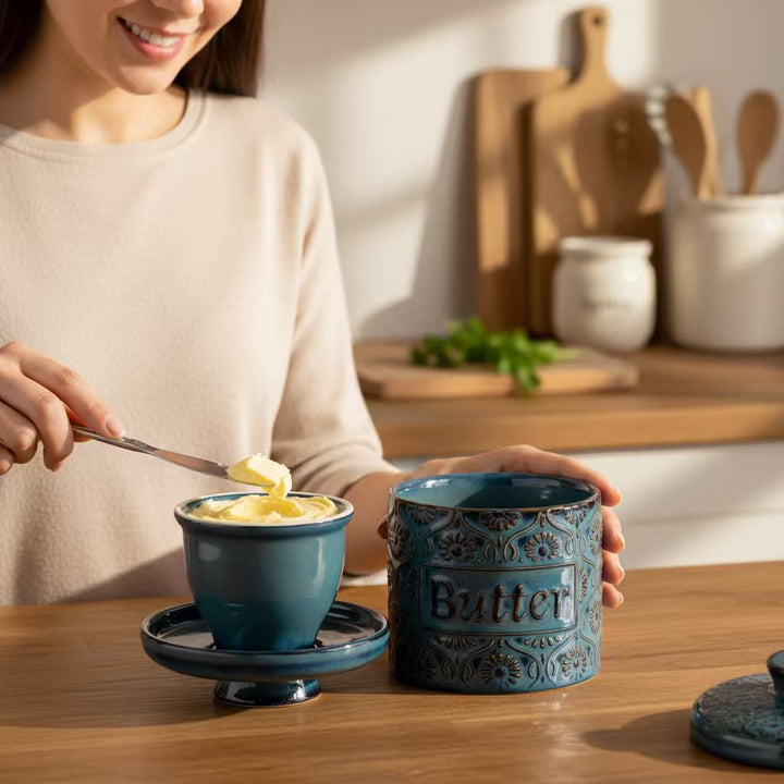 | Product Name | Butter Crock, Ceramic Butter Dish with Lid, 6.7 oz French Butter Keeper, Reactive Glaze – Blue |