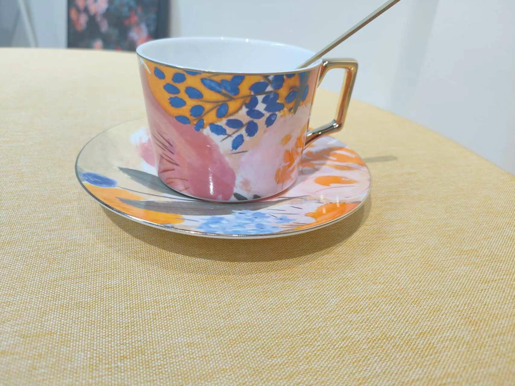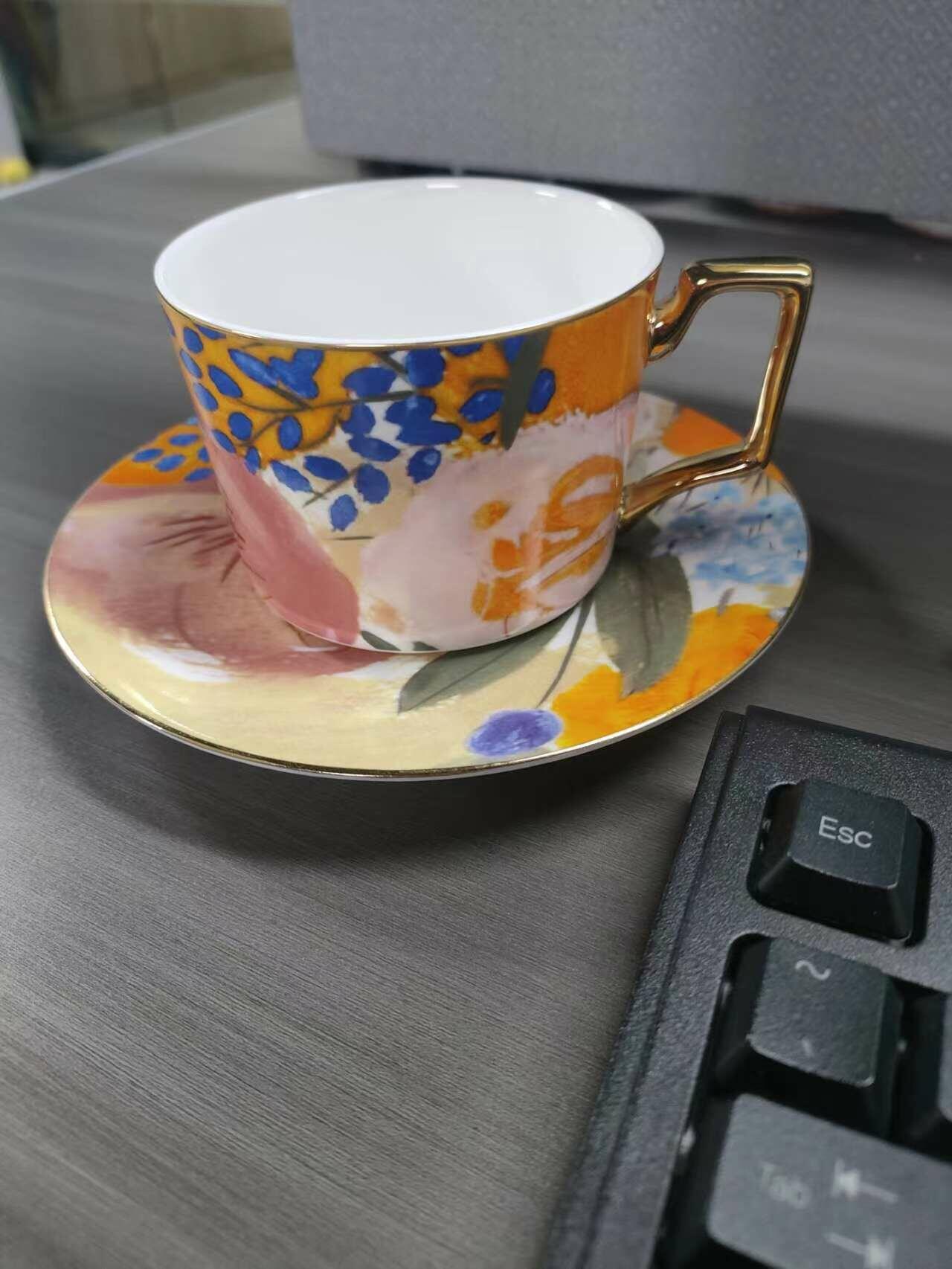 Detail Description 45 % bone-ash bone china, lead- & cadmium-free, EU food-grade. Hand-painted 24K gold rim, pastel Instagram-worthy palette. Ready-to-gift 1.5 kg luxury box with satin ribbon & blank card—FBA/Shopify drop-ship ready. MOQ 50 for custom logo/laser engraving, 7-day sample lead, DDP worldwide shipping.